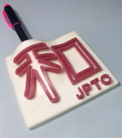 The grooves in the kanji are filled in with suture training to complete 'Wa'.